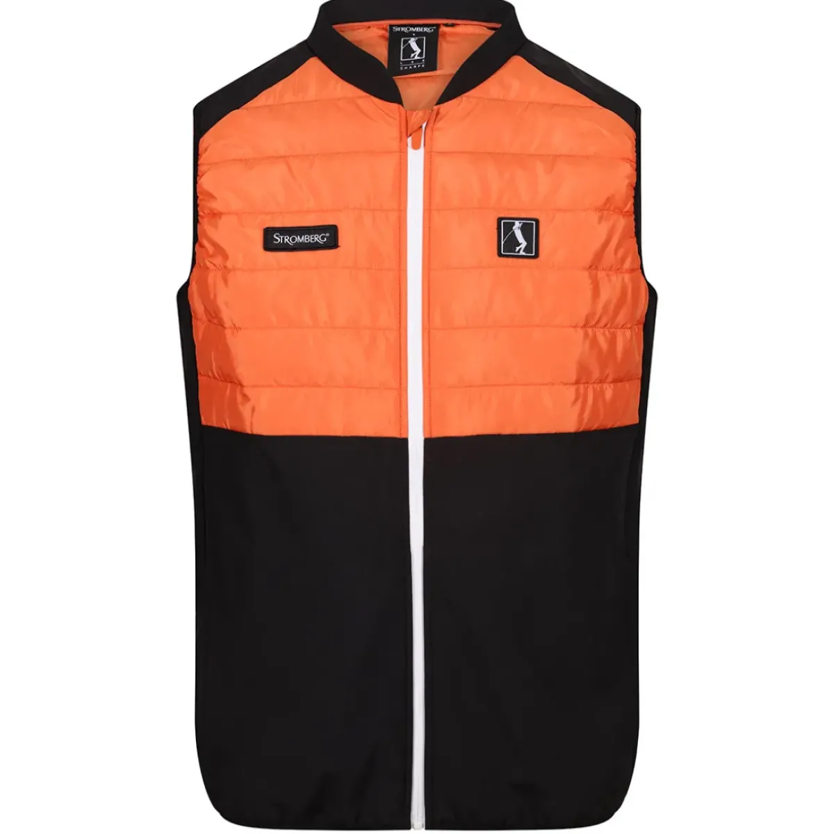 The Stromberg Jaxx hybrid Tess gilet offers the very best in performance and weather resistance. Constructed with a softshell body for comfort and mobility, with a quilted front chest/body panel to resist the wind chill as you perform. The layer also offers water-resistant protection and has waterproof zips to prevent moisture from getting inside. The garment has a full-zip opening, and front pockets, plus is highlighted with a woven branded badge with an embroidered edge for added appeal. Part of the Lee Sharpe range of Stromberg golf apparel, new for this season.