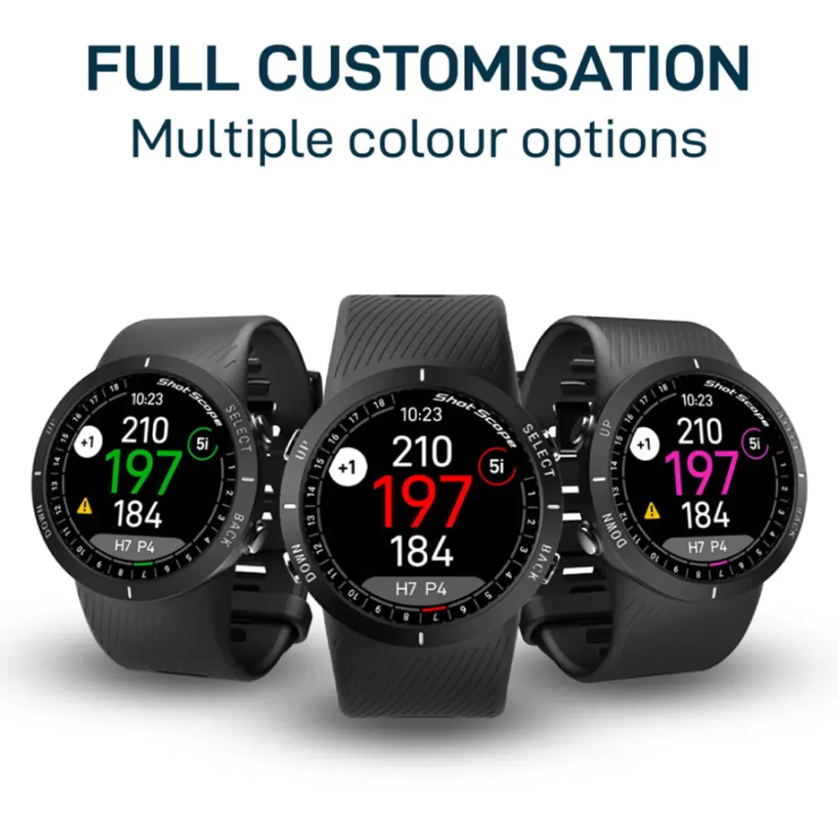 The Shot Scope V5 GPS golf watch offers golfers accurate distances combined with automatic performance tracking at an unbeatable price. Easy to use with a simple 4-button navigation, the V5 makes it straightforward to access features such as hazards, layups, and hole maps.