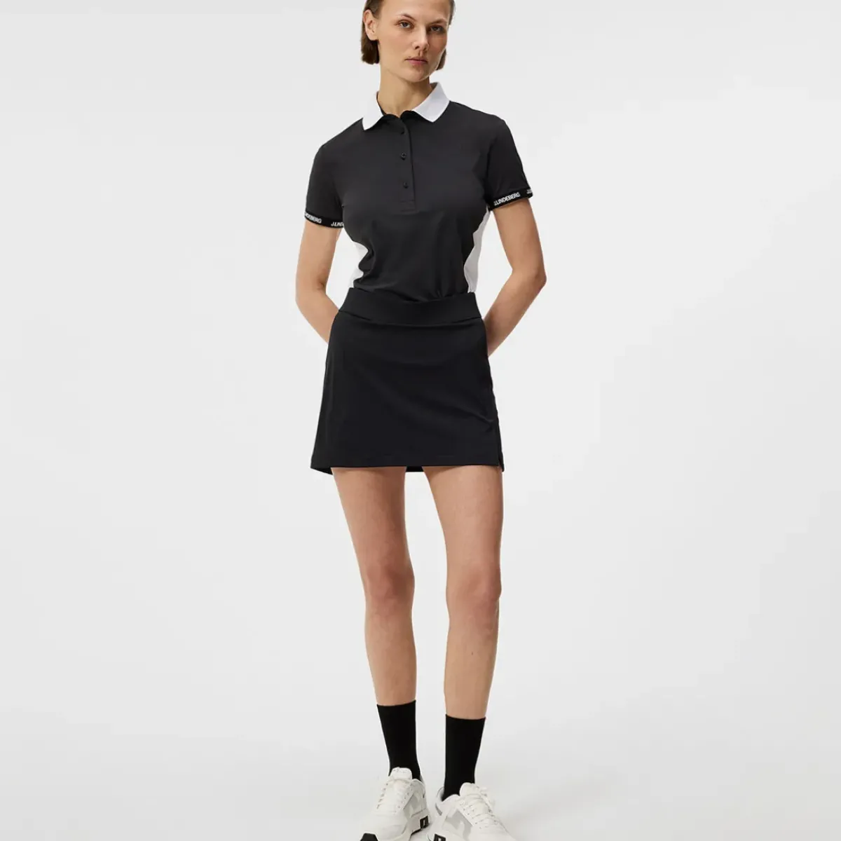 This premium golf skort is sure to give you the inspiration to play better golf as is made with J.Lindeberg`s most loved TX jersey fabric. Which has a 4-way stretch for an unrestricted swing as you play golf, and is equipped with fast drying and moisture-wicking capabilities. A system that works by wicking sweat away from the body, aiding in rapid evaporation. The design features attached inner shorts for added confidence and has a rear zip pocket for additional requirements. Highlighted with an embroidery bridge logo at the back for added distinction.