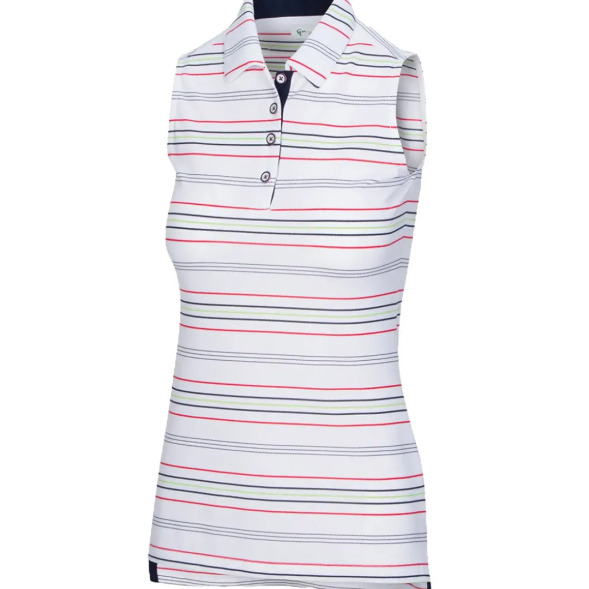 This high-performance sleeveless polo shirt allows you to play golf with zero distractions. A technical shirt with a performance stretch to enable you to move freely as you swing the golf club. Equipped with PlayDry moisture management to help you stay cool, dry, and comfortable, with a 15+ UV protection rating to keep you safe from harmful rays. The design features a tailored collar, multi-colour stripes and buttons, a high-low hem, and side vents.