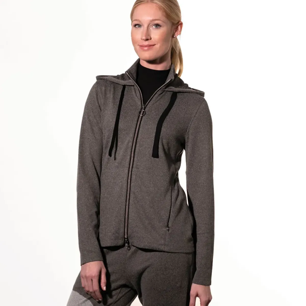 Performance By Design, this cosy knit hooded layer features the latest in technical fabric technology. The garment offers exceptional comfort and stretch, and offers 50+ UPF protection to keep you safe from harmful rays. The design features a full-zip opening, mock neck with a drawstring hood, and has secure front pockets. Its modern edge style and luxury hand feel give you confidence on or off the golf course.