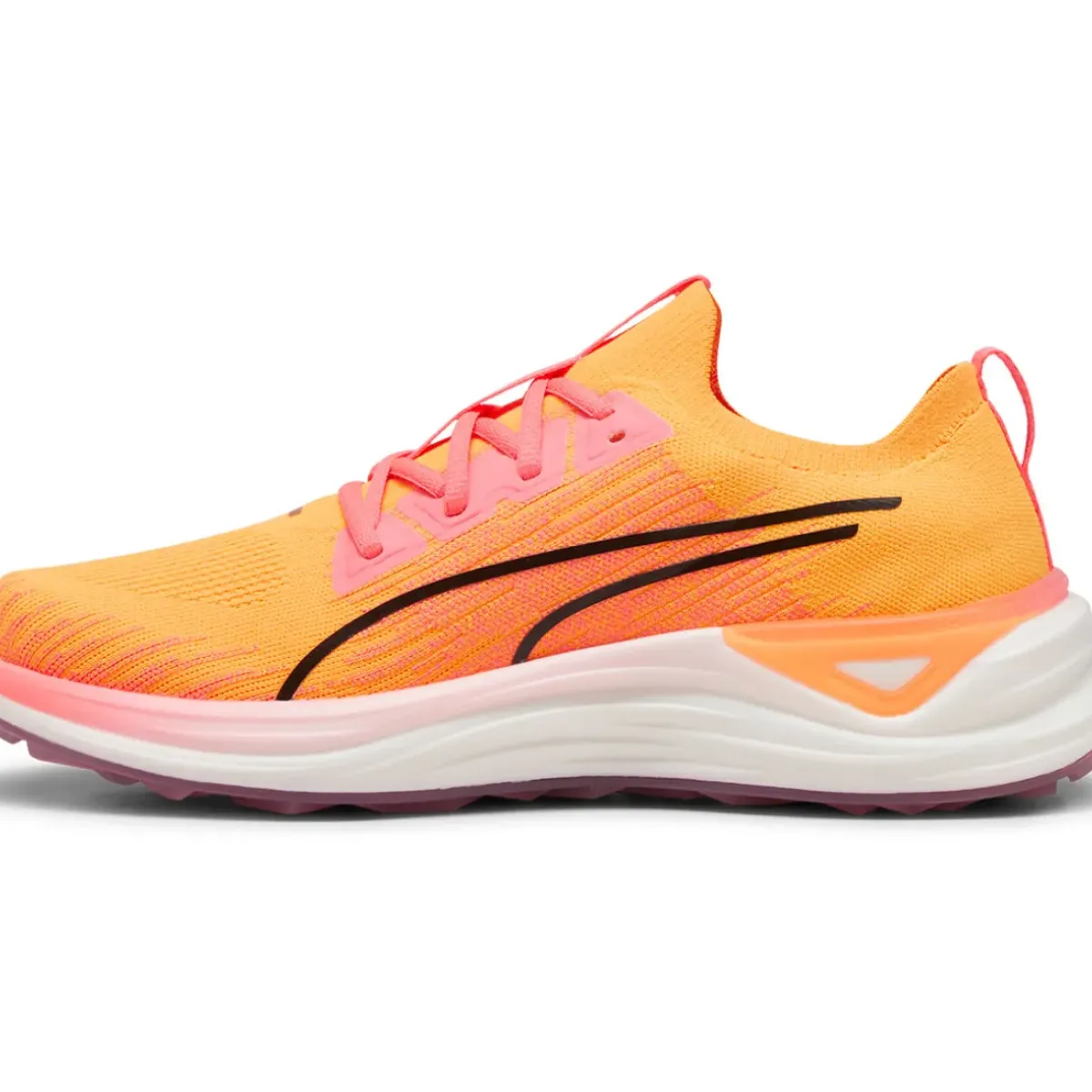 The PUMA Golf Electrocat Nitro Fire Glow spikeless shoes provide maximum cushioning and comfort, a modern athletic shoe built for the golf course.