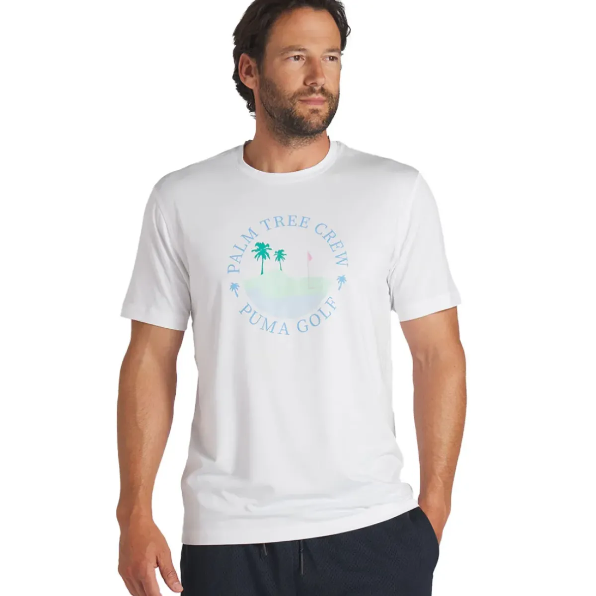 This PUMA Golf t-shirt has been constructed with a performance fabric that offers moisture-wicking to keep you dry as you perform. It has a natural stretch for better mobility, to ensure you can move freely to play or relax. This garment is part of the Palm Tree Crew range and longtime crew member, Rickie Fowler. Founded by world-renowned DJ, songwriter and record producer, KYGO. That encapsulates premier tropical vibes and is represented by its iconic palm tree logo.