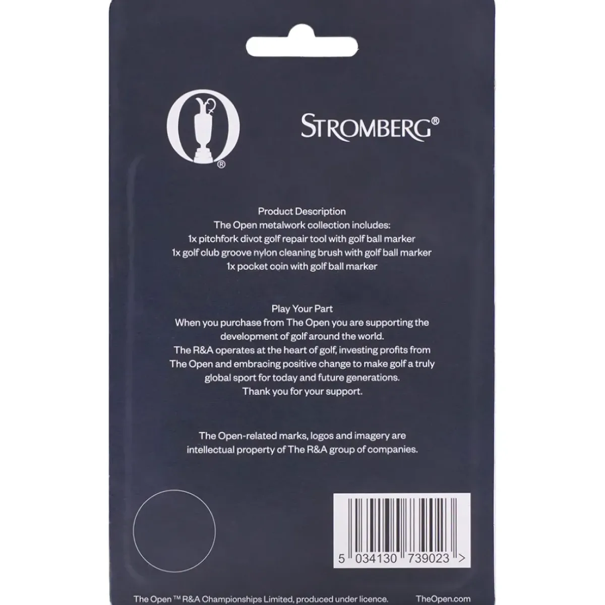 The Stromberg Metalwork collection is an exclusive pack that contains metal accessories to assist as you play golf. This accessory collection includes an ergonomically shaped divot tool, a club cleaning brush with nylon bristles, and a pocket coin, including 3 additional nickel ball markers with an enamel finish. All are highlighted with associated R&A branding for maximum appeal.