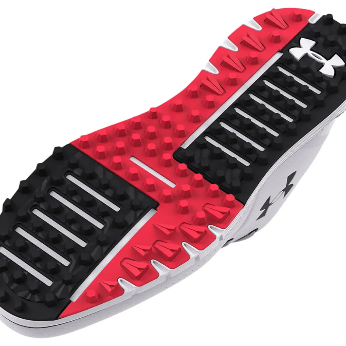 The lightweight spikeless outsole has been constructed with UA rotational resistance moulded traction elements for excellent lockdown traction on a variety of surfaces. It provides more flexibility on or off the golf course without any loss of traction. E Sizing built to better fit athletes with wide feet.