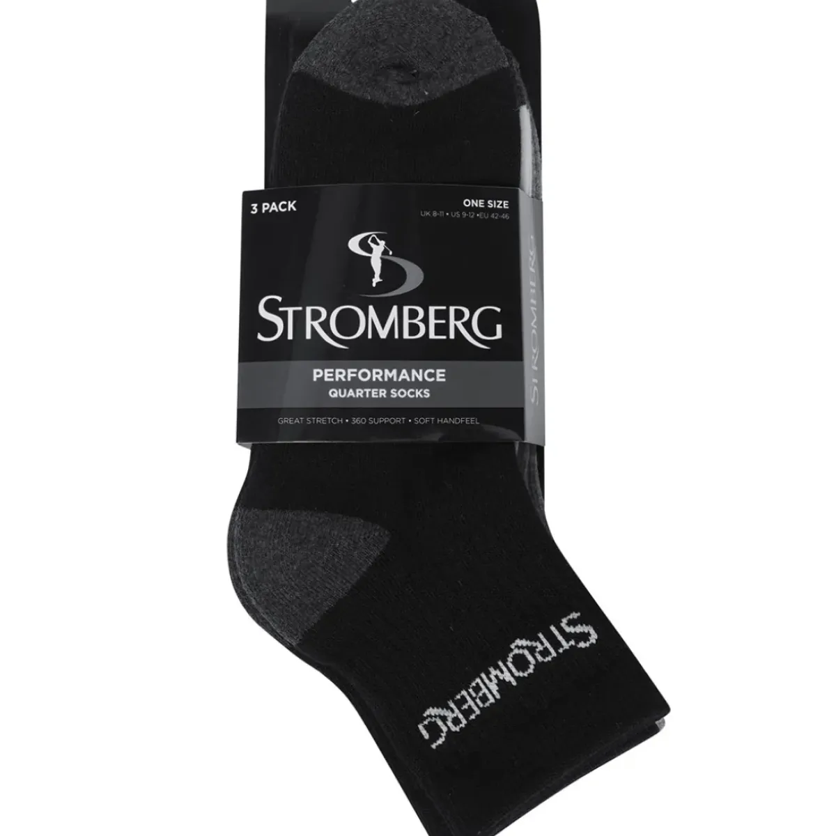 Play in more comfort and less distraction with these high-quality quarter length golf socks from Stromberg. The socks have been designed with 360 arch support and padded soles to keep you as comfortable as possible when wearing. They have a high-stretch content for a comfortable fit, plus are moisture-wicking and anti-microbial (odour control), for zero distractions as you perform.
