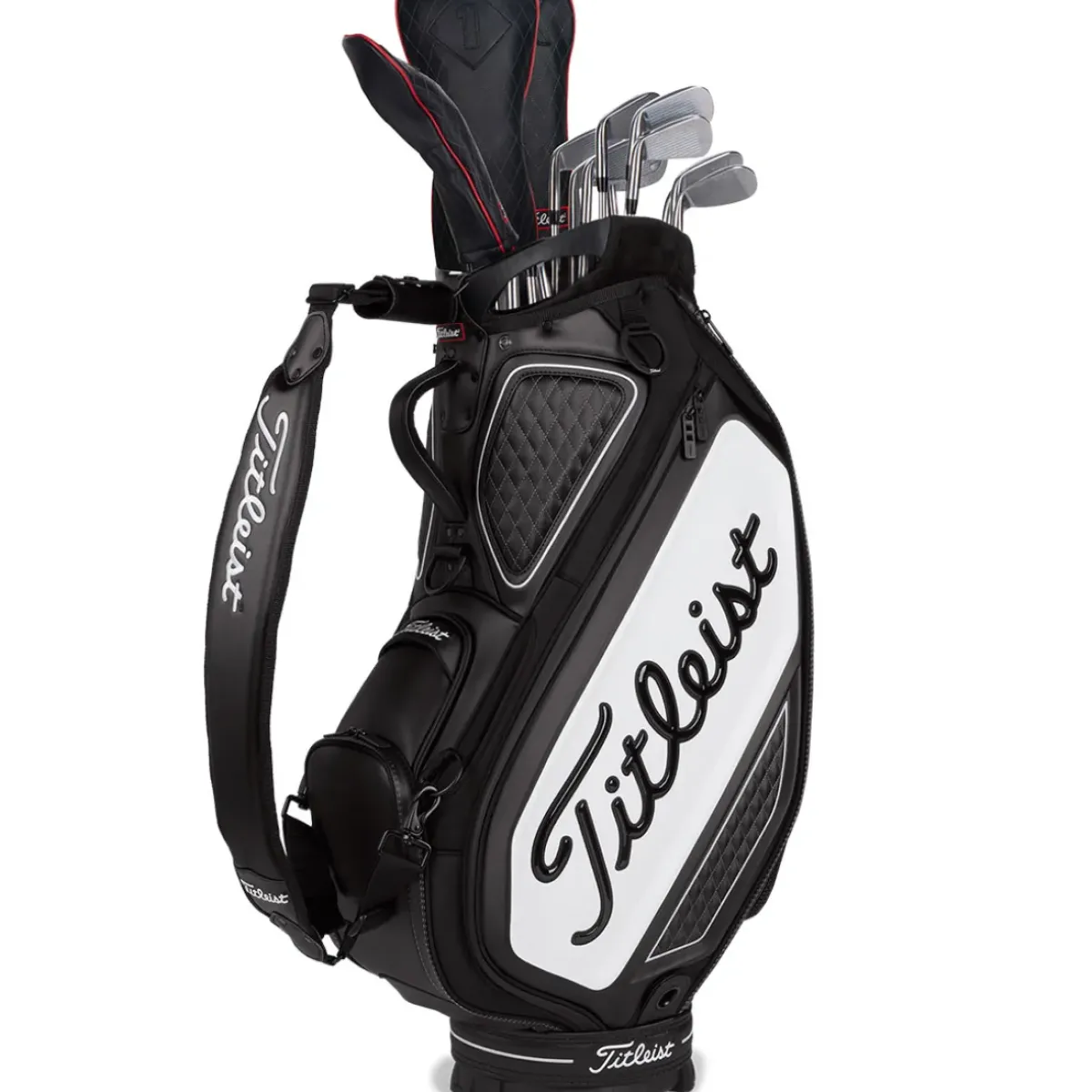 The Titleist Tour Staff golf bag has a premium construction, with proven performance on the worldwide Professional Tour.