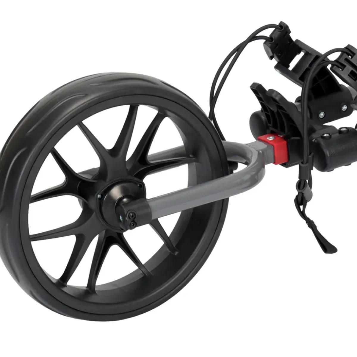 The Slider 3-wheel push trolley has a sporty and sturdy construction, with upper and lower bag straps to accommodate even the largest of golf bags. It provides easy folding and includes the umbrella attachment point, scorecard and bottle holder, unlike most leading brands. Other features include a foot parking brake, valuables compartment, and has a removable front wheel to fit in tighter storage spaces.