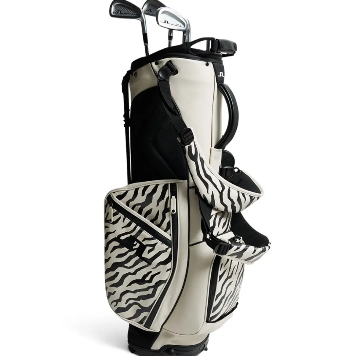 This premium quality J.Lindeberg stand bag has been designed with a durable, abrasion, and heat-resistant synthetic leather material with an all-over seasonal print for added distinction.