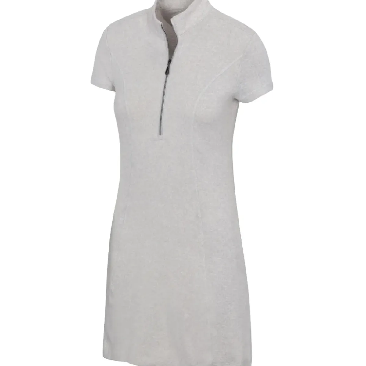Designed to play in any tournament with a technical stretch to ensure comfort and freedom to move as you push hard. Constructed with a cosy knit fabric, with extreme 45+ sun-blocking for total performance as you play golf. The dress features a mock neck collar, princess seams, a high-low hem, and a teardrop gunmetal zip pull. The Greg Norman dress is also equipped with 2 front pockets and 1 back pocket for added assistance as you play your round of golf.