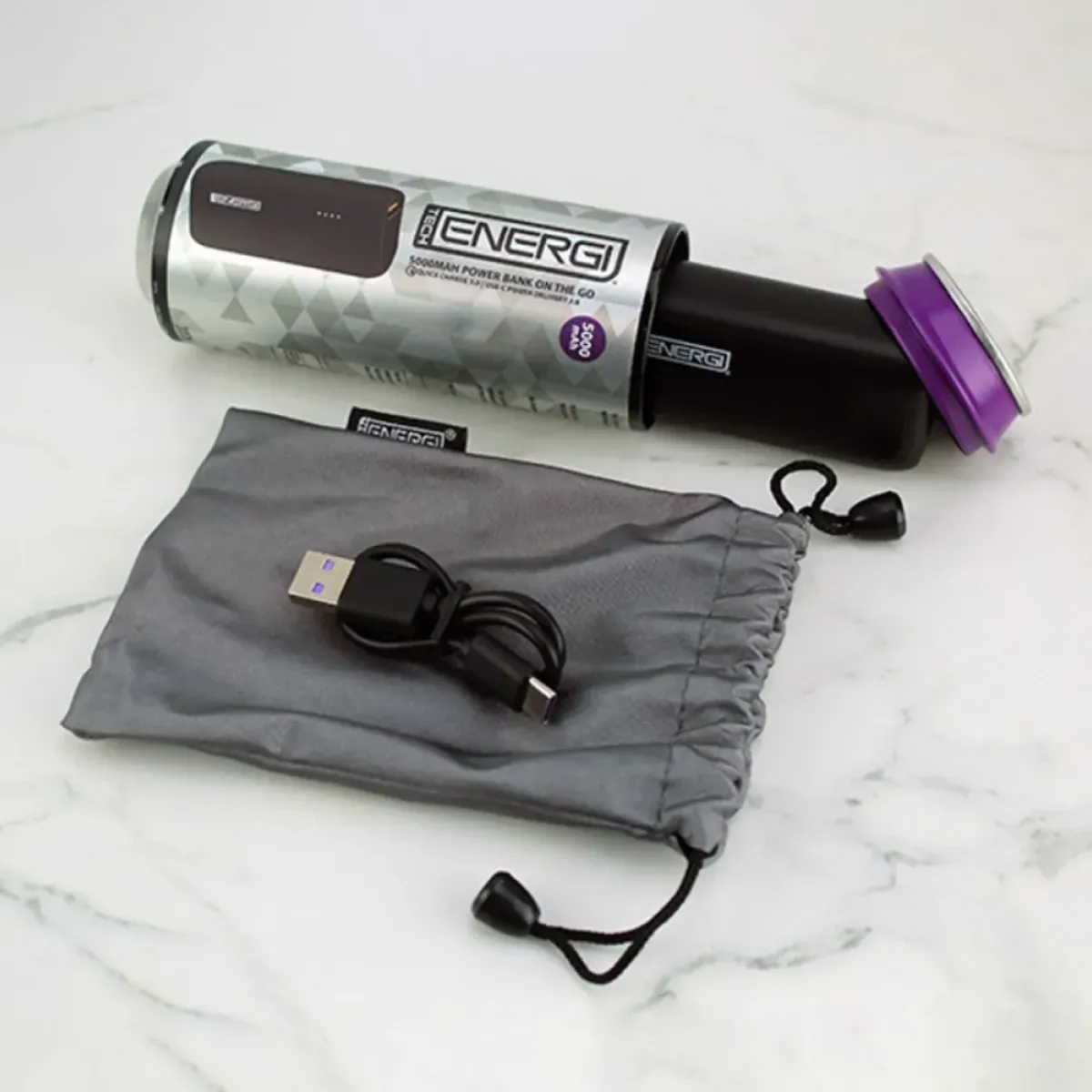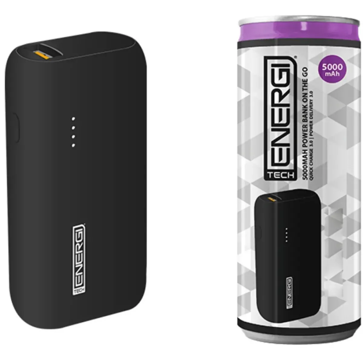 Charge your devices with the Tech Energi 5000mAh Power Bank. Small, stylish, sleek, and durable, fitting in the palm of your hand, perfect for super-fast charging on the go.