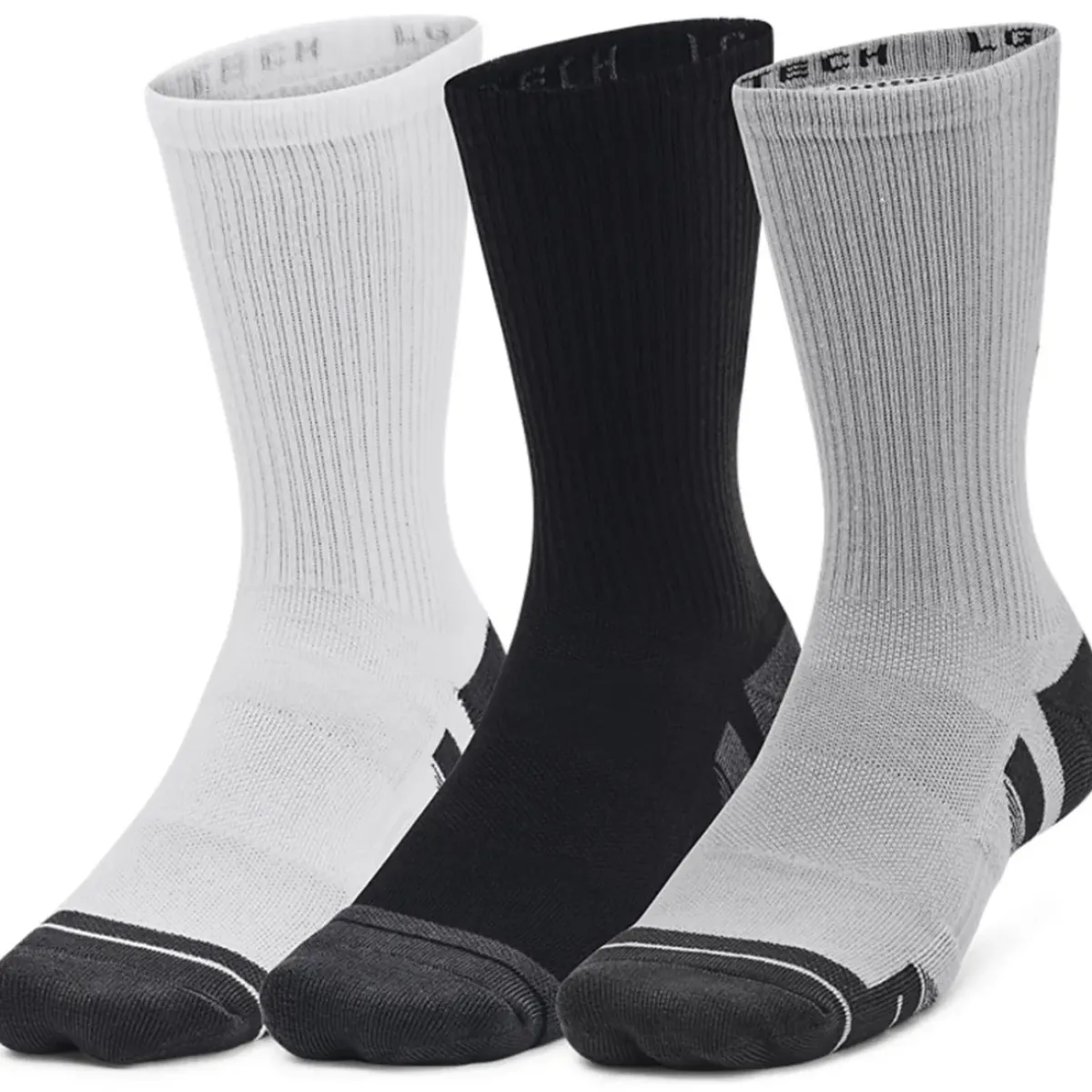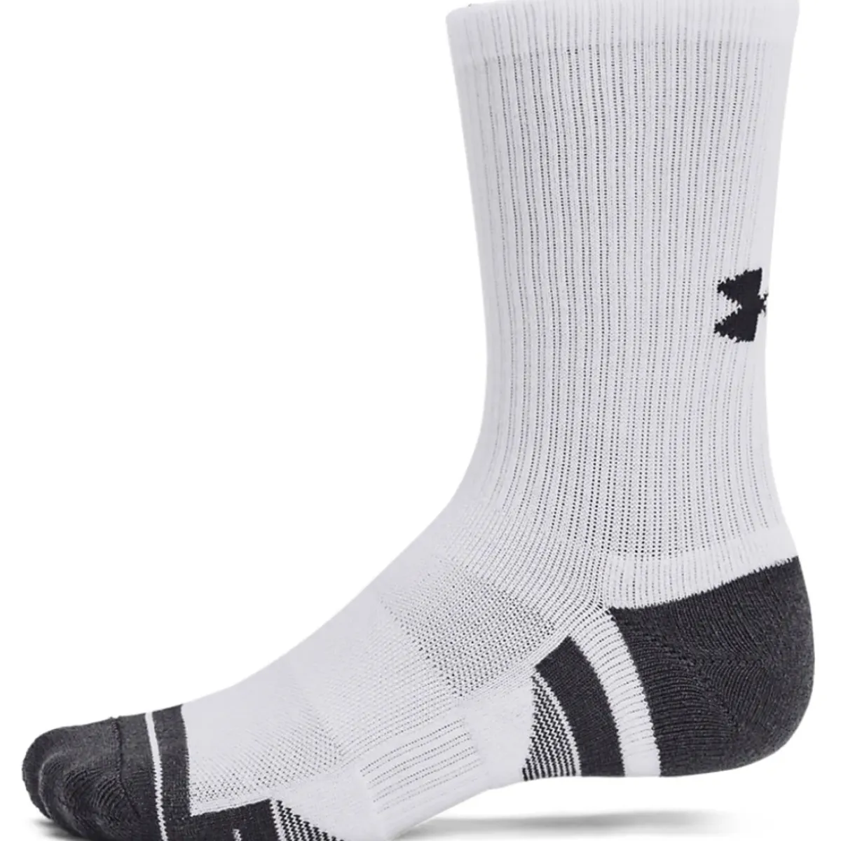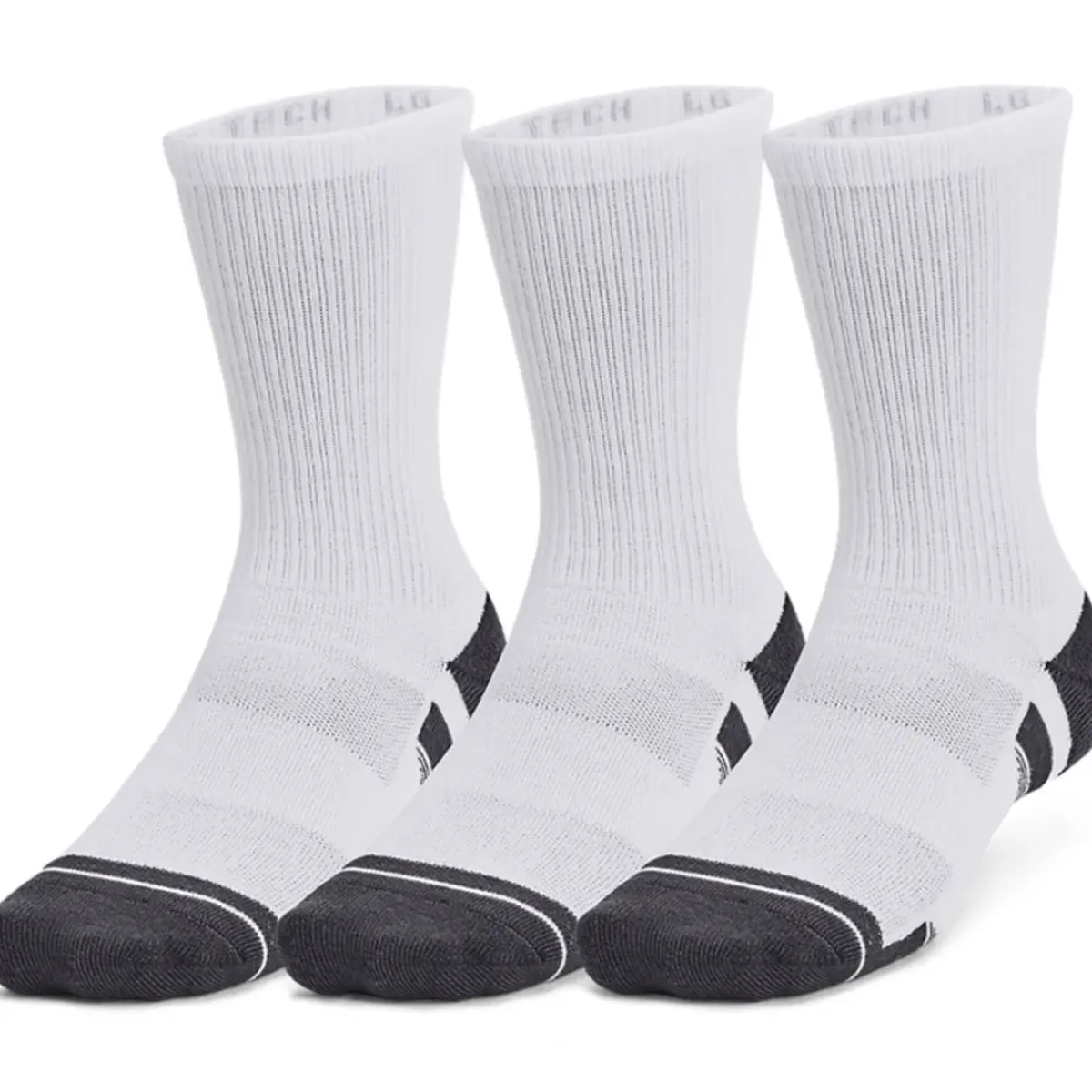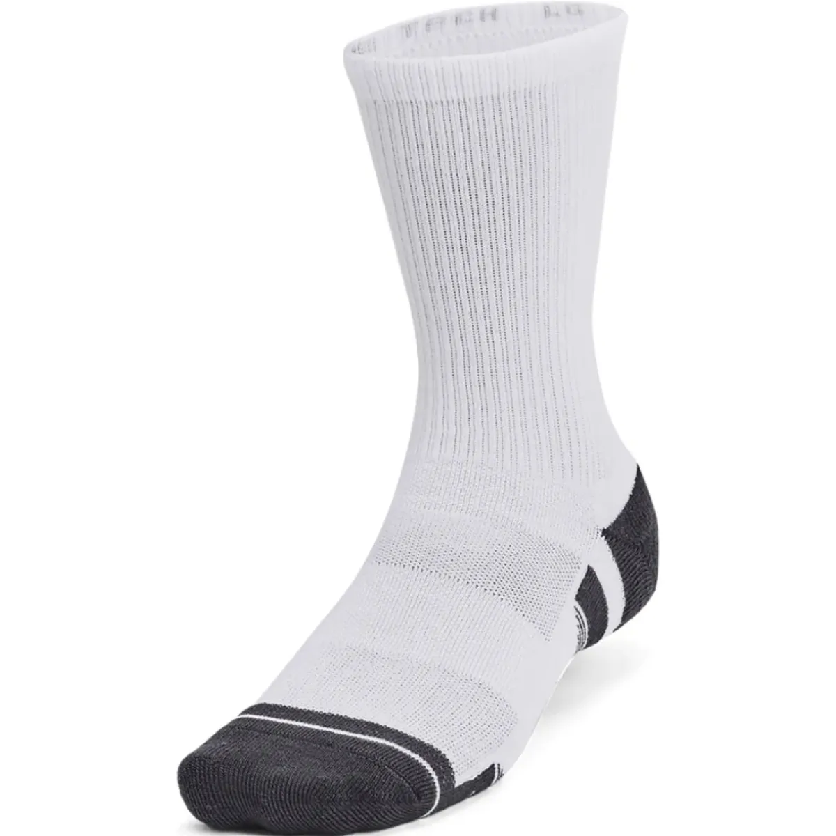 These Under Armour socks are made with a durable moisture-wicking material that dries fast. The locked-in fit design keeps the sock securely on your heel for an adjustment-free fit. Offering cushioning throughout the foot for comfort and protection. The socks also feature mesh panels on top of the foot for added breathability and include built-in arch support to help reduce foot fatigue.