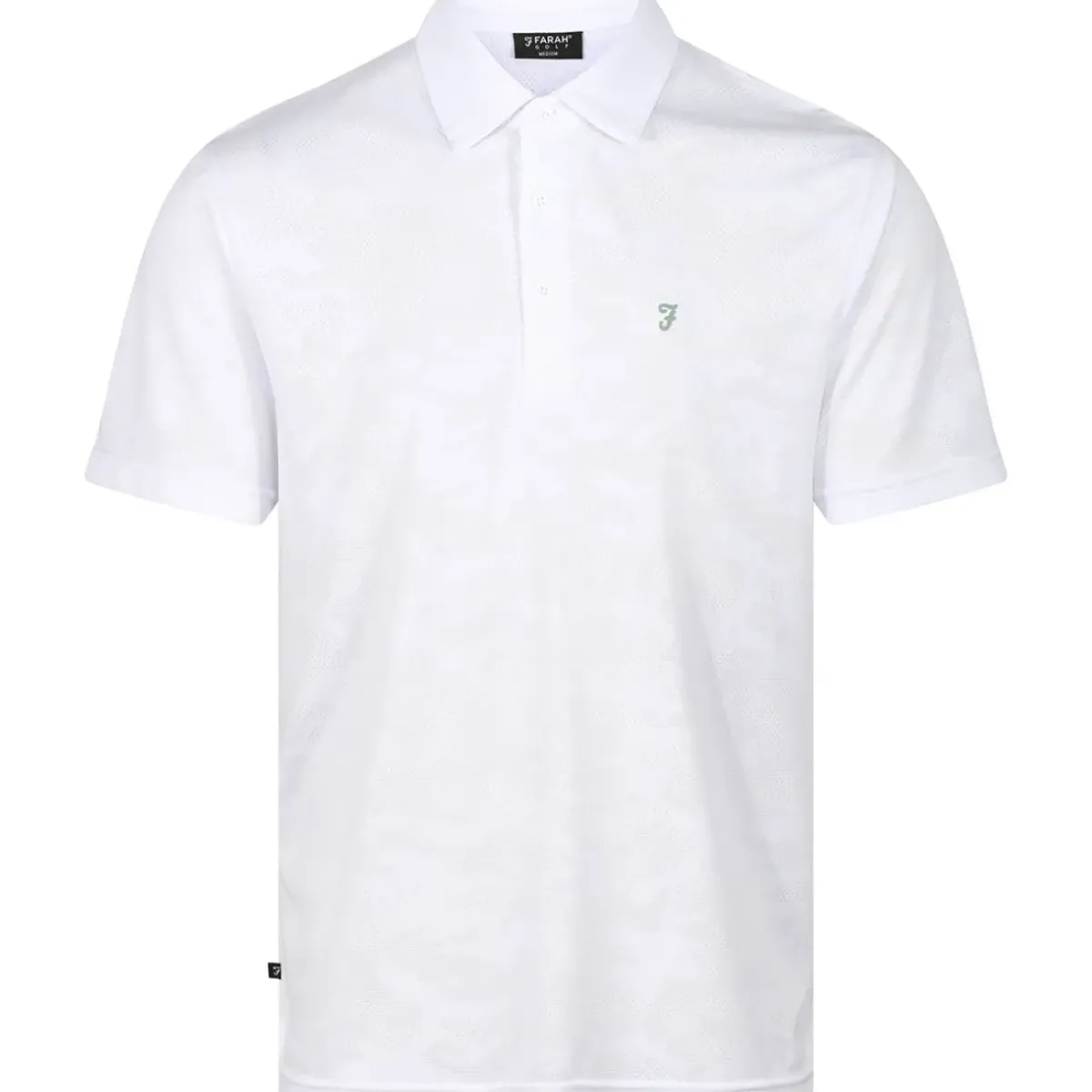 This tonal jacquard camo shirt is the lightest polo shirt in the Farah Golf range coming in at just 155g. It has a jacquard fabric construction and is highly breathable for moisture management. Highlighted with a stylish all-over print, satin sleeves, and a 3 button placket and side hem to create a classic finish.