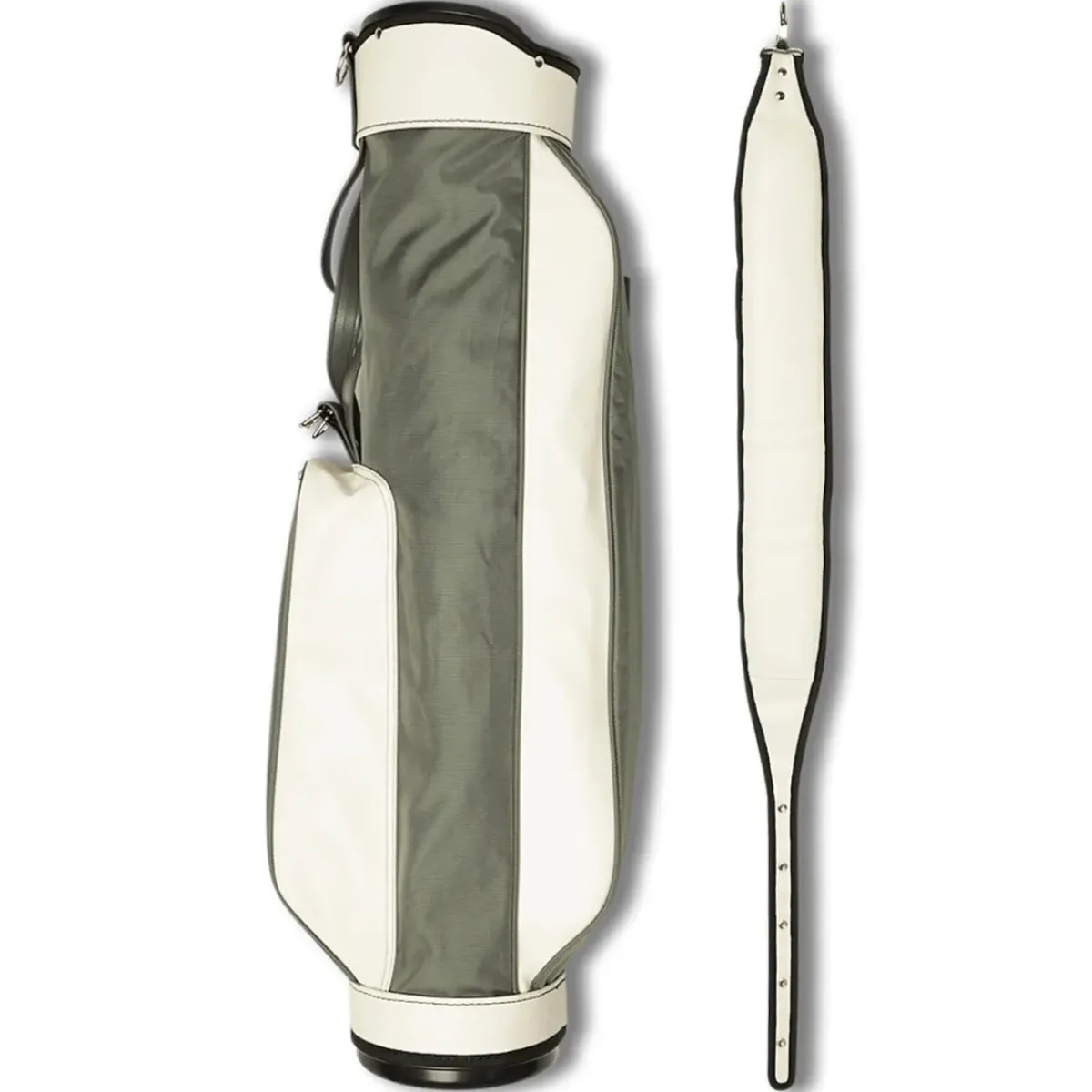The Jones Original carry bag is retro-inspired and compact to keep the game simple. The design is one of the most iconic in the golf game, made from a water-resistant nylon material to keep your gear dry from the elements. It has a 7.5" top cuff with a 3-way club divider system to separate your clubs for easier selection. It also has 2 front pockets and 1 rear pocket to store your essentials, and a single padded shoulder strap for comfort as you carry. Weight: 3.1lbs