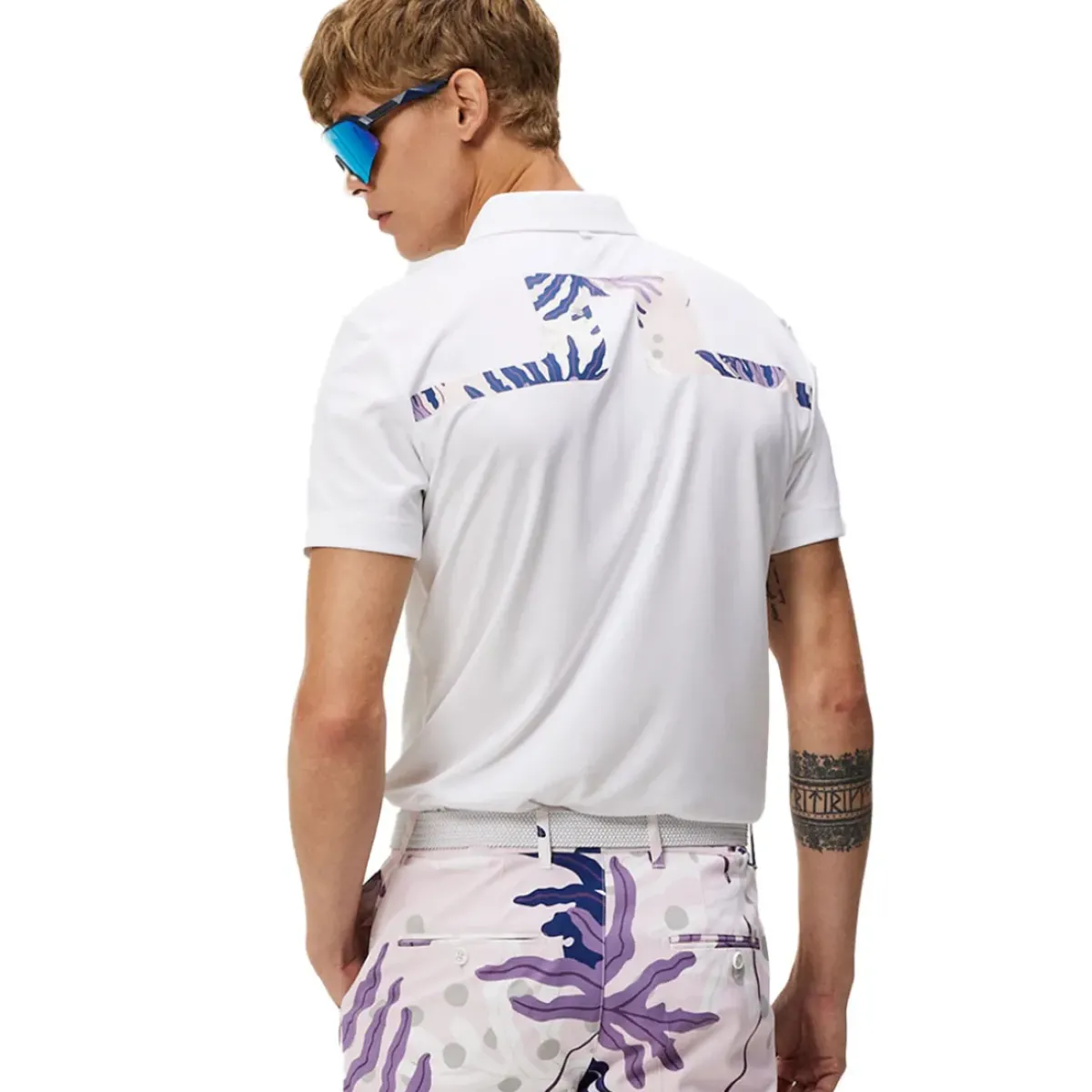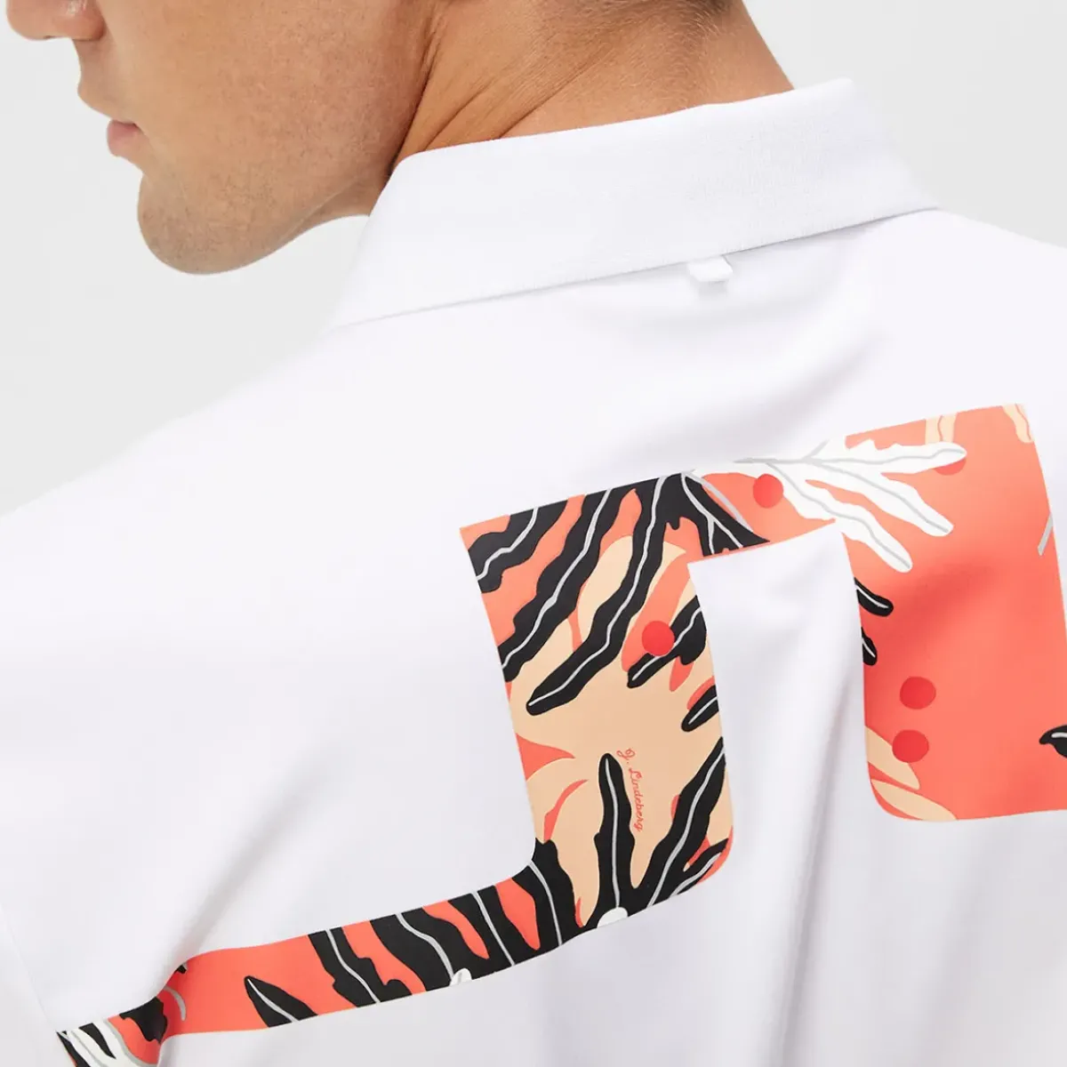 This J.Lindeberg polo shirt is made with an exclusive jersey fabric, to ensure you can perform at the highest levels of golf. It provides a 4-way stretch and moisture management, plus is fast drying for zero distractions when playing golf. The shirt has a traditional 3-button placket and rib collar, with a seasonal back print and a 35 mm silicone print at the chest. (Regular Fit).