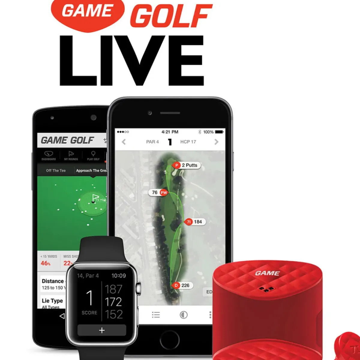 - 18 club tags, GAME GOLF tracking device, USB cable and protective pouch